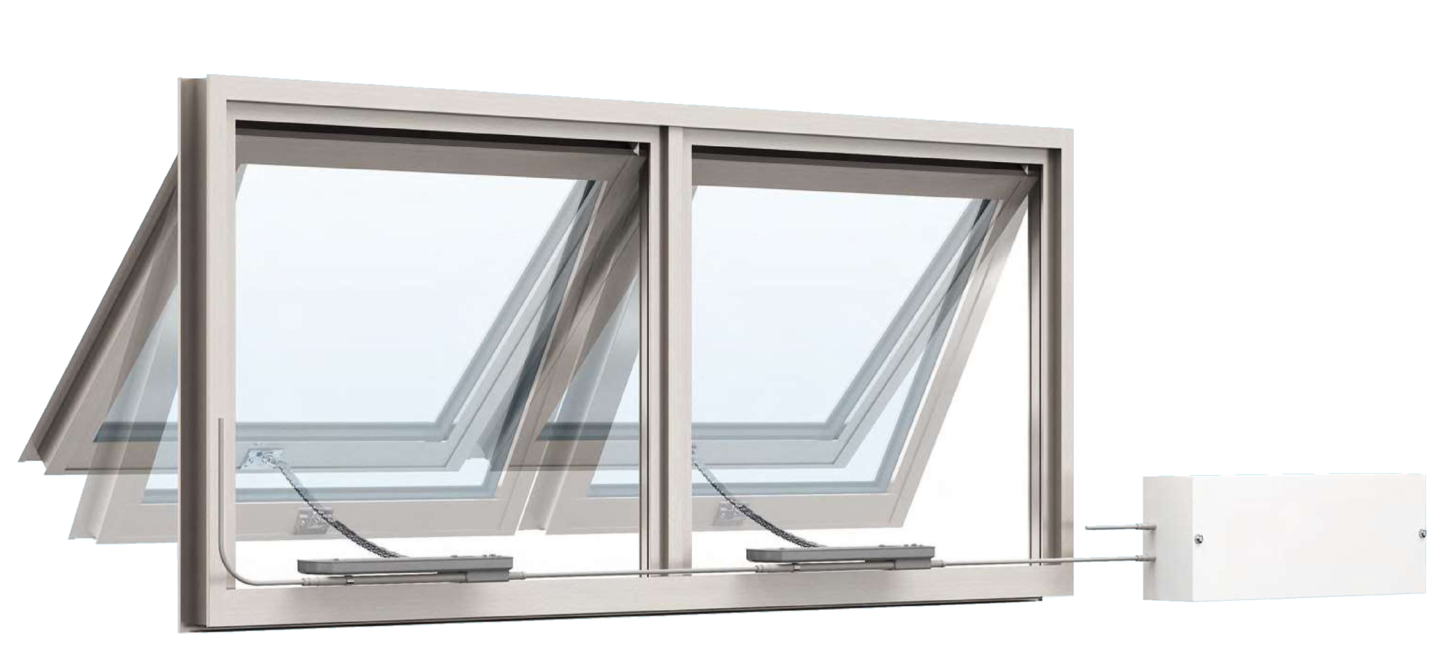 もしもの火災時に煙を逃がして人々が避難する時間を確保する排煙窓用開閉装置。昨今の新型コロナウィルス感染拡大により「換気窓」としても需要が伸びています。